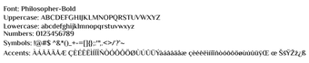 ฟิโลโซเฟอร์เป็นตระกูลแบบอักษรเซอริฟฟรีที่ออกแบบมาสำหรับ Windows ซึ่งมีชื่อเสียงในด้านการผสมผสานระหว่างความสง่างามแบบคลาสสิกและความอ่านง่ายในสมัยใหม่ มันมีเซอริฟที่สะอาดและคมชัด และมีความแตกต่างในน้ำหนักเส้นที่พอเหมาะ ทำให้เหมาะสำหรับการใช้งานออกแบบที่หลากหลาย แบบอักษรนี้รวมถึงหลายสไตล์ เช่น น้ำหนักปกติและน้ำหนักหนา พร้อมกับรูปแบบอิตาลิก ซึ่งให้ทางเลือกที่หลากหลายแก่ผู้ออกแบบในการแสดงออกถึงความคิดสร้างสรรค์ เหมาะสำหรับโครงการบรรณาธิการ การสร้างแบรนด์ และบรรจุภัณฑ์ ฟิโลโซเฟอร์สร้างสมดุลระหว่างความซับซ้อนและความเข้าถึงได้